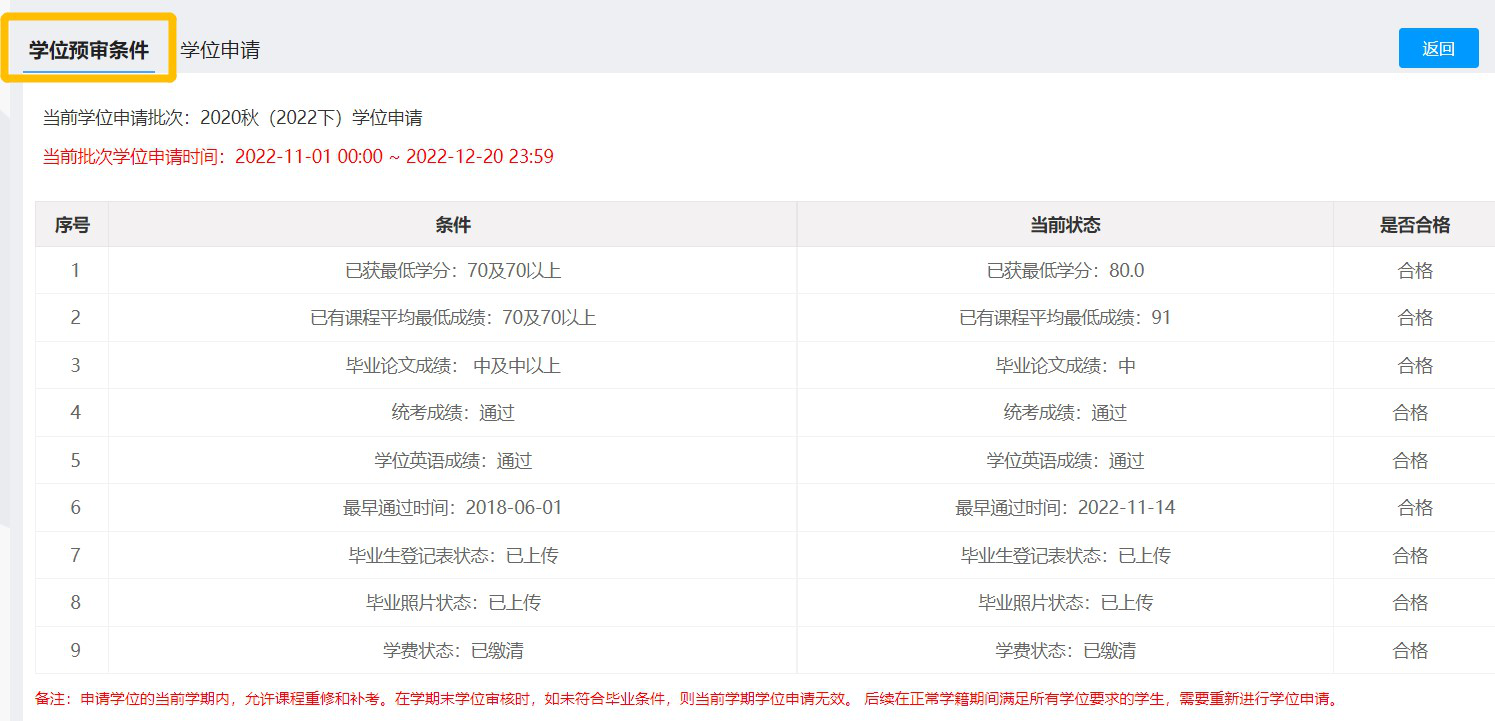1、当前批次没有通过学位审核的学生,之后满足学位条件的,都必须在下个批次重新进行申请。之前批次申请的记录过期无效。