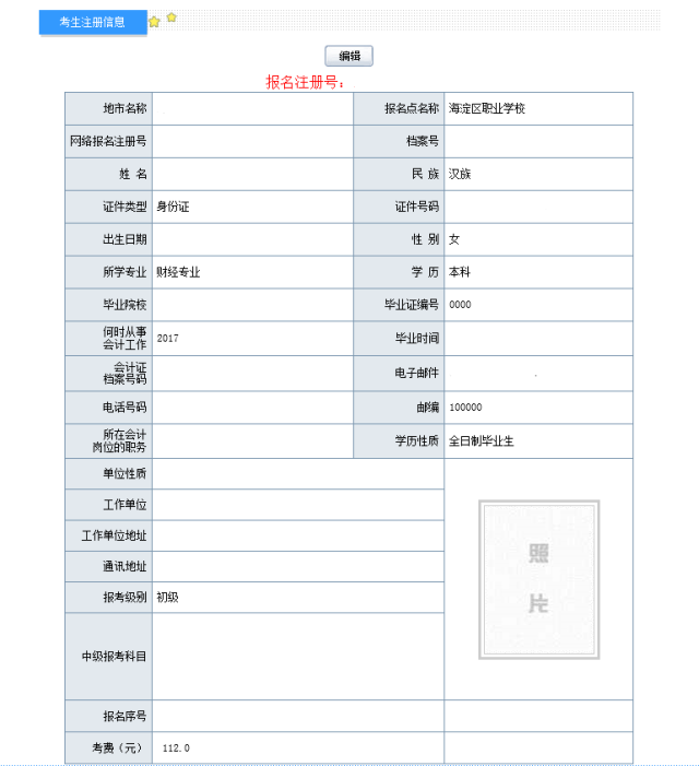 如需查看或修改信息可再次登录网站(需要注册号),点击“编辑”修改个人信息