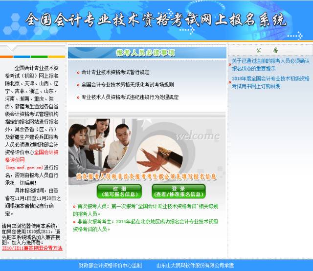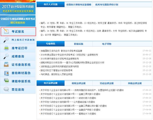 第一步:打开IE浏览器,登陆财政部会计资格评价中心官网 http://kzp.mof.gov.cn/,点击左下角考试报名