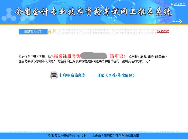 第十步:生成报名注册号(重要,一定要记住!),如图下所示: