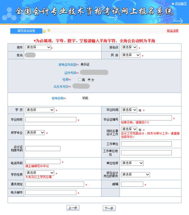 第八步:认真填写个人报考信息,打*号的部分必填,确认后点击下一步